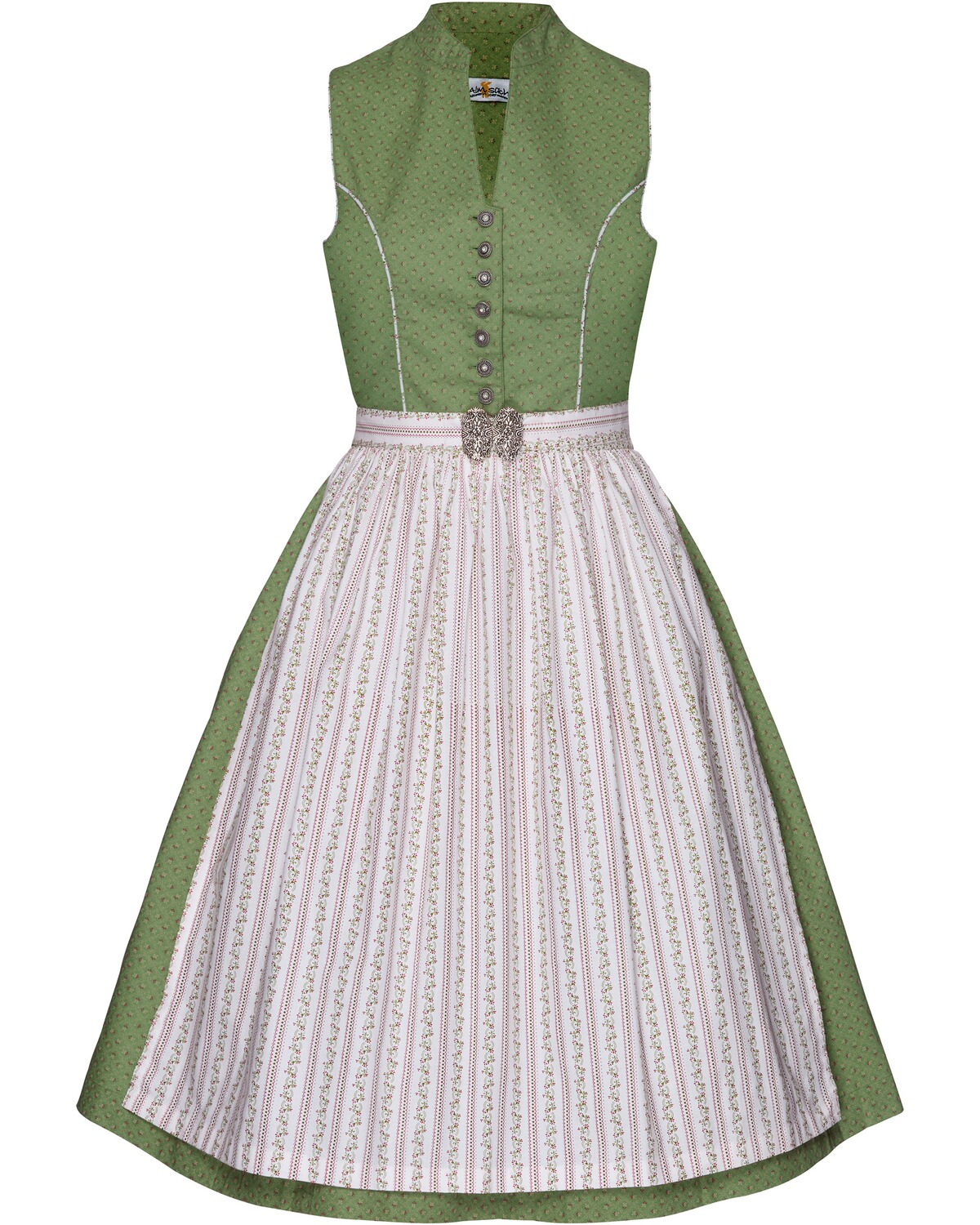 Almsach Midi-Dirndl Grün/Offwhite (Größe: 36)
