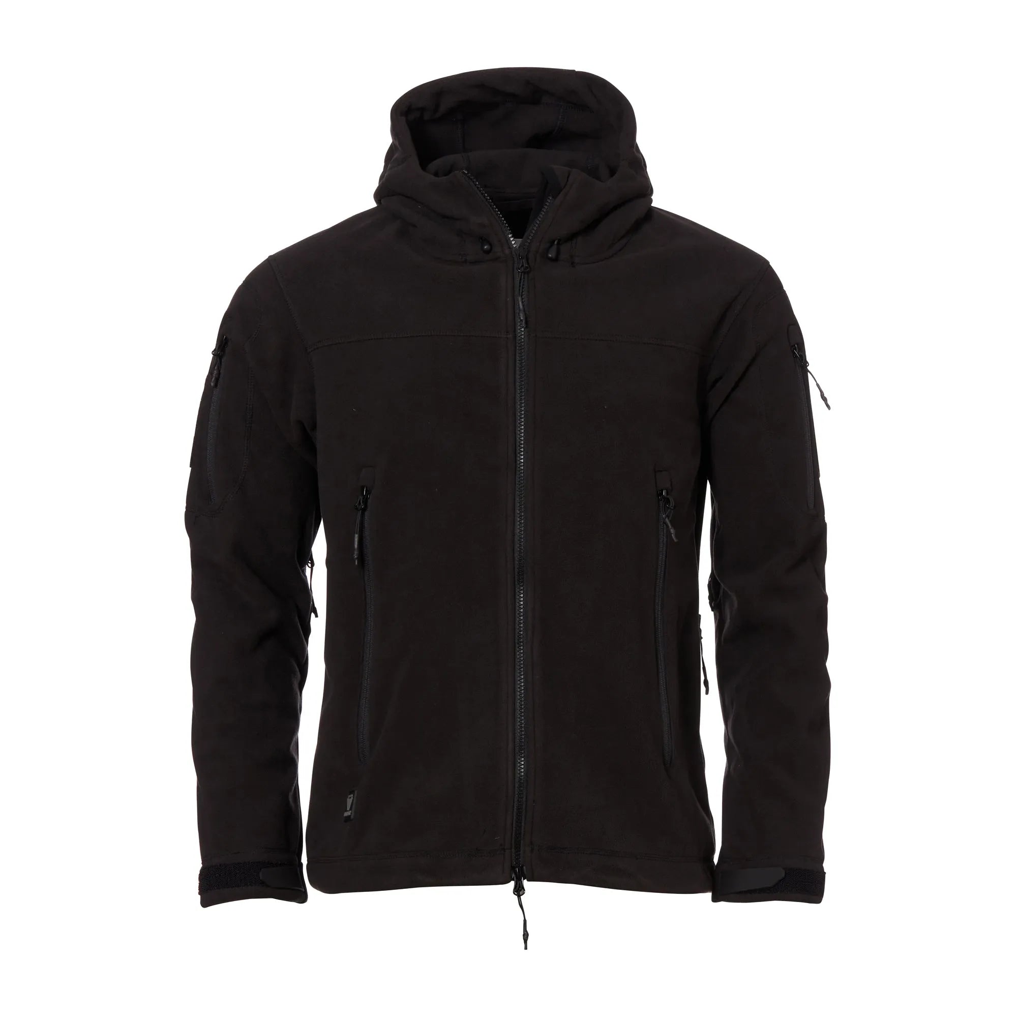 Die Outrider Fleecejacke Windblock Fleece Hoody AR schwarz kann sowohl als Midlayer wie auch als eigenständiges Oberteil getragen werden. Aufgrund ihrer wind- und wasserabweisenden Eigenschaften ist sie ideal für den Outdoor-Bereich. Sie ist so geschnitten, dass Du Dich sehr frei bewegen kannst und nicht eingeschränkt fühlst. Damit dies gewährleistet wird, wird beispielsweise auf Nähte auf der Schulter verzichtet und die körperbetonte Kapuze kann mittels zwei Kordelzügen angepasst werden. Zudem ist sie auf den Ellbogen und anderen beanspruchten Stellen mit Nylon verstärkt, um rascher Abnutzung vorzubeugen. Der Saumzug, der sich links und rechts an der Hüfte befindet, bewirkt nicht nur, dass Du den Hoody nach Deinen Wünschen einstellen kannst, sondern auch, dass Wärme gespeichert wird. Damit auch bei großer Anstrengung ein angenehmes Körpergefühl bestehen bleibt und Schweiß zuverlässig abtransportiert werden kann, befinden sich zum Beispiel im Bereich der Achseln Ventilationszips. In Eingriffstaschen und Oberarmtaschen kannst Du Ausrüstung griffbereit verstauen. Die Innentasche verfügt über einen Kopfhörerausgang. Material: – Jacke: 100% Polyester – Ellbogen: 100% Nylon